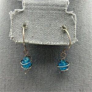 Boho Sterling Silver 925 Spiral Wrapped Blue Speckled Beaded Dangle Earrings