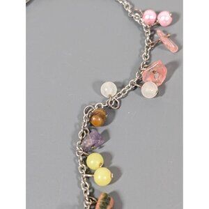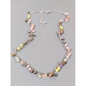 Boho Stone And Faux Pearl Charm Cluster Dainty Necklace Silver Tone 19"