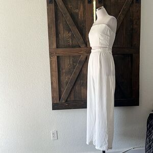 Boho Strapless Cut Out Tube Top Romper Casual Belted Wide Leg Jumpsuit