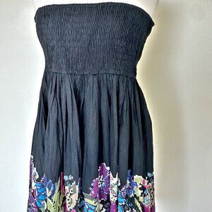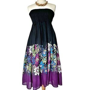 Boho Strapless Floral Maxi Dress Black Purple Smocked Bust Summer Beach Festival