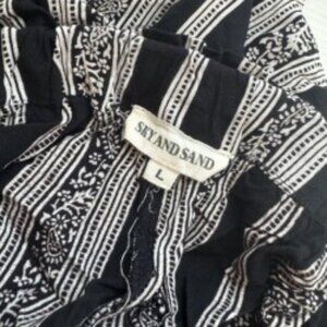 Lightweight and breezy, these Sky and Sand pants feature a bold black and white boho stripe pattern with an elastic waistband for ultimate comfort. Made from 100% cotton—perfect for warm weather, beach days, or lounging in style.