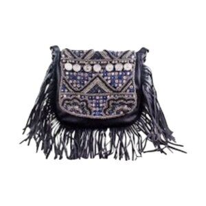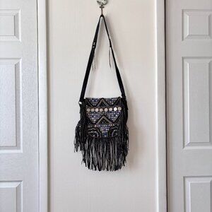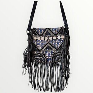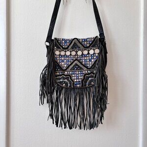 EUC; Boho Studded Fringe Leather Crossbody Bag