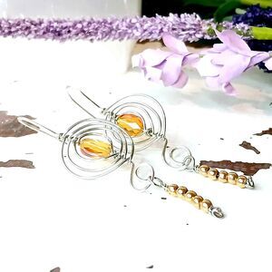 Boho Style Beaded Dangle Earrings, Wire Wrapped Glass, OOAK Statement Chic