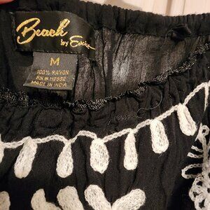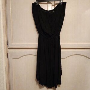 Boho Style Black Strapless Dress!!! (M) White Floral Embroidery & Flowing A Line