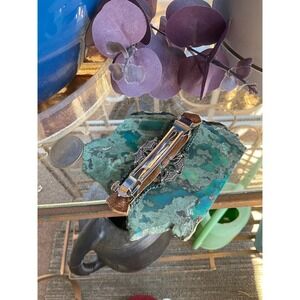 This a beautiful hair clip that I made using soft emerald green nylon chord. The design is elegant in style. The focal point is a beautiful silver geometrical flower. I added flower beads to the sides of the barette to add more character. This hair barette is 2.5” long. 1.25” at widest. This is a very cute accessory to dazzle up your hair with. I very much enjoyed creating it. Thank you for looking.