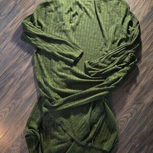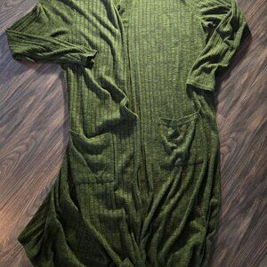 Boho Style Open Front Maxi Green & Black Ribbed Cardigan w/ Pockets SIZE XXL