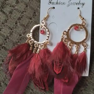 Boho Style Rice Beads Feather Earrings In Burgundy and Red Color - NWT