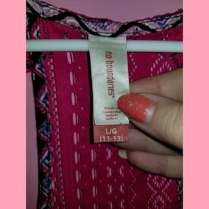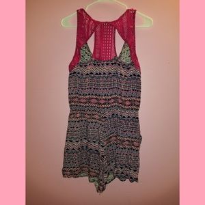 So adorable!! Boho aztec print. Crochet back. With pockets. This is a perfect romper for summer and spring. Great condition. Button front. Size Large 11-13 No Boundaries