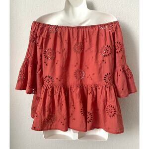 Boho Style Rust Orange Women's Top W/Eyelet Detail Off Shoulder Neckline Size Lg
