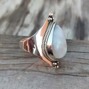 Boho Style Silver Plated Egg Shape Moonstone Ring Multiple Sizes