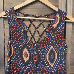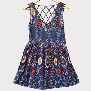 Boho Summer Spring Geometric V Neck Beach Gypsy Mini Forever 21 Dress Sz Small