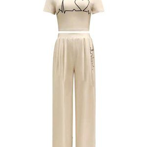 Boho Summer Two Piece Cropped T-shirt & High Waist Wide Leg Outfit NWOT