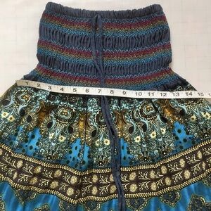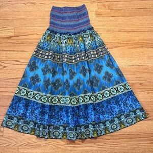 Brand New All cotton Boho Syle floral blue skater midi Smoked Skirt.