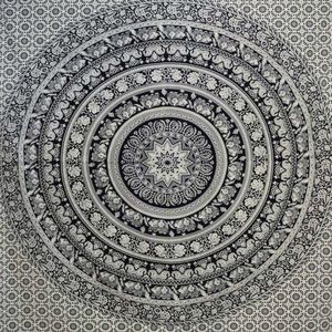 Cream and black mandala tapestry with elephants on it! Had it in my room for years but in perfect condition