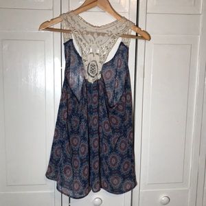 This is a cute boho inspired tank top. Dark blue with some cute detailing!
