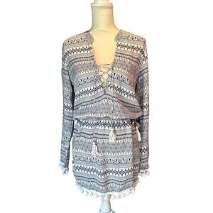 Boho Tassel Fringe Geometric Blue Island Cover Up Size Small Cruise Beach HotTub