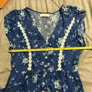 Boho Theme Blue Floral Flutter Sleeve Beautiful C+D+M Maxi Dress Size Medium