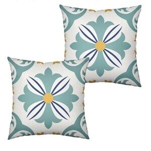 Boho Throw Pillow Covers 16x16 Aquo Blue Floral Printed Farmhouse Decorative Pillow Covers Bohemian Outdoor Pillow Covers Set of 2 for Couch Garden Patio