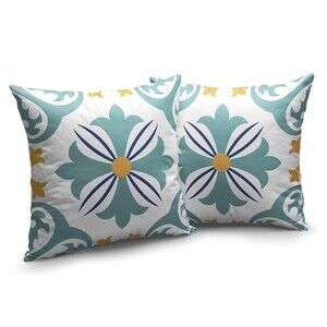 Boho Throw Pillow Cover 16x16 Aqua Blue Floral Printed NEW!!