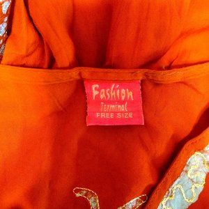 Bohemian rust-red dress with tie-dye butterfly design. Edges have a sheer "butterfly" lining. One size. Bought at a festival, worn once. Very good condition.