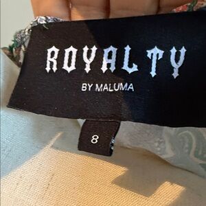 Stylish dress with intricate green and gray patterns. Features a flattering tie-front design. Flirty boho dress size 8
