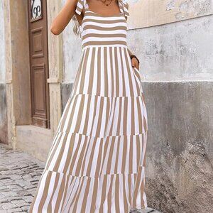 This soft and breathable maxi dress is the perfect throw-on-and-go piece for sunny days, tropical vacations, and effortless boho style. Featuring adjustable tie straps, a square neckline, and a flowy tiered silhouette, this dress flatters every shape while keeping you cool and comfy. Striped and floral options make it easy to dress up or down.