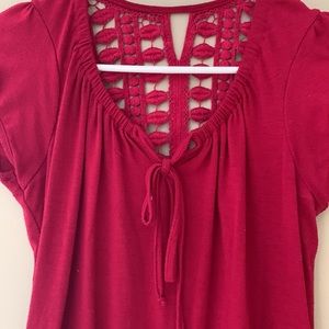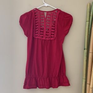 Bohemian top with crochet back and ruffle bottom. Tie in front. Size small. Part of the 10 items for $15!!