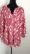 Boho Top Button Front Shirt Tunic Raglan Sleeves Red and White Size 2X