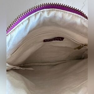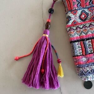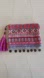 EUC Mereno Beaded Clutch in Tribal Design with Fringe Tassel, Metallic Charms & Zip Closure