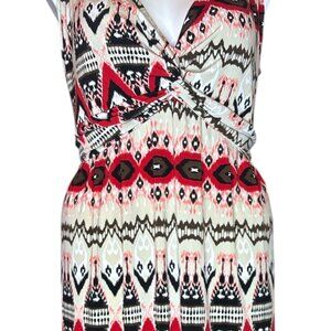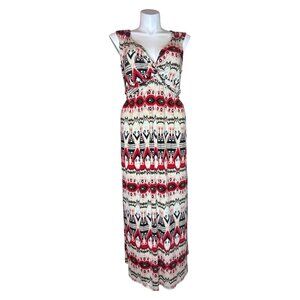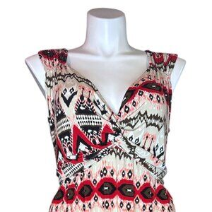 Boho Chic Tribal Print Maxi Dress Women's Plus Size 14W Sleeveless V-Neck Belted Stretch Long Sundress