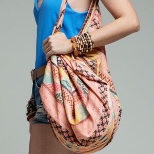 Boho Tribal Print Multicolor Zipper Large Size Shoulder Bag