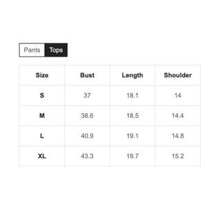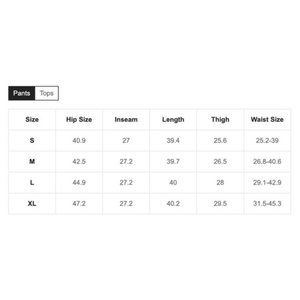 SIZE CHARTS IN PHOTOS