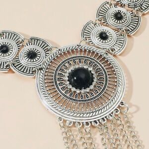Boho Tribal Silver & Black Tassel Statement Necklace