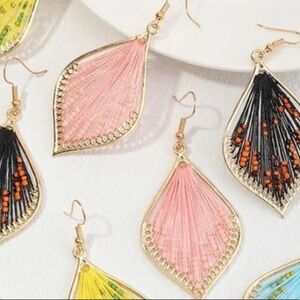 Boho Tribal Thread Woven Beaded Drop Earrings