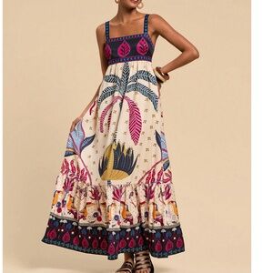 Boho Tropical Animal Print Colorful Cami Maxi Dress