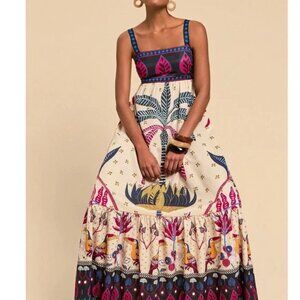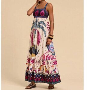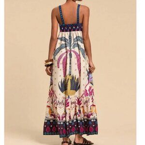 Boho Tropical Animal Print Shirred ruffle Hem Maxi Dress