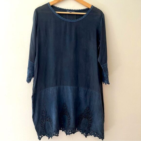 Boho Tunic Lace Trimmed Stonewashed Navy Medium Crosstree Lane