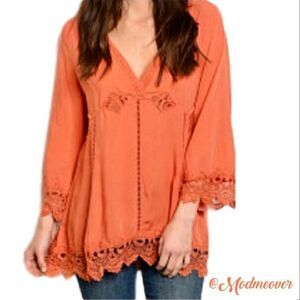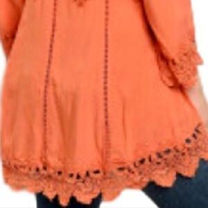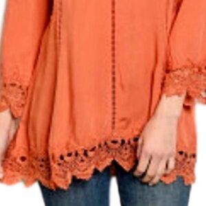 Boho Tunic ~ Pumpkin Spice ~ Embroidered ~ Scallop Lace Trim ~ NEW