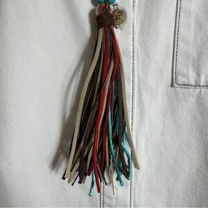 Boho Turquoise Glass Bead Beaded Necklace Leather Tassel Red Accent 34” Western