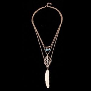 Boho Turquoise Leaf Feather Layered Necklace (#2)