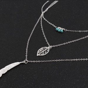 NEW WITH TAGS Boho Turquoise Leaf Feather Layered Necklace