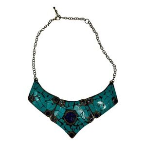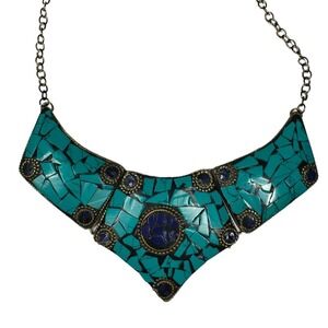 Boho Turquoise Mosaic Collar Necklace Statement Piece Tribal Festival Unique