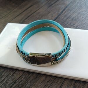Boho Turquoise leather wrap bracelet magnetic