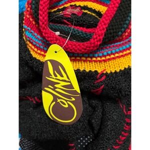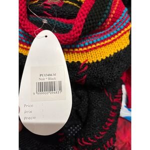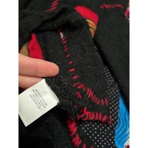 Boho Turtleneck Sweater M Black Knit Pullover Geometric Colorful Design