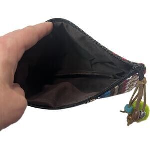 Boho Ultrasuede Embroidered Make-up Bag Beads Pom-pom