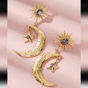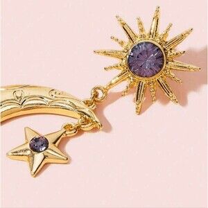 Boho Unique Gold-color Sun, Moon And Stars Shaped Blue Rhineston NWT