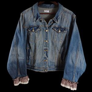Boho Upcycled Denim Jacket L Handmade Doily Back Cottagecore Lace Jean Layer