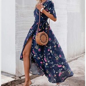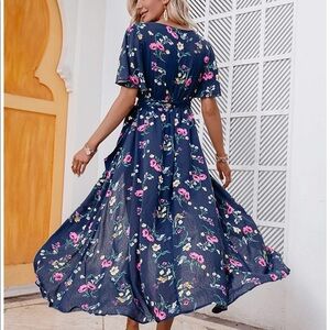 The gorgeous dress features pretty butterfly sleeve and wrap v-neckline