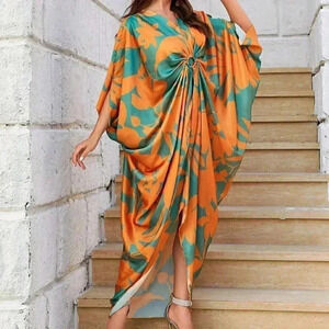 Boho Vacay Floral Print Batwing Sleeve Dress