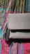 Faux Suade gray women's crossbody bag with a bohemian flair of fringe detailing. Stitched suade seams.